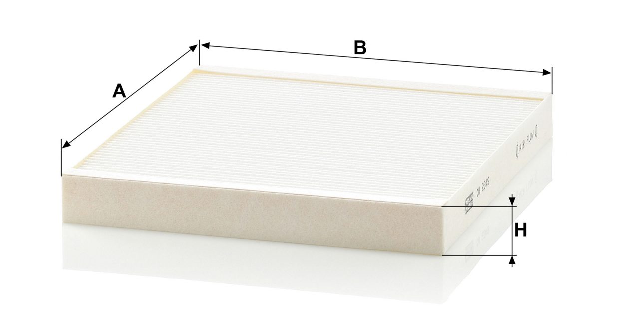 High-quality MANN-FILTER cabin filters offer almost 100% protection against particles such as pollen, diesel soot and tyre abrasion - for a feel-good climate in the vehicle interior and protection of the air conditioning system. Exact fit and perfect tightness ensure constant filtration performance during the entire service interval / Optimum vehicle interior ventilation due to the high air flow capacity.